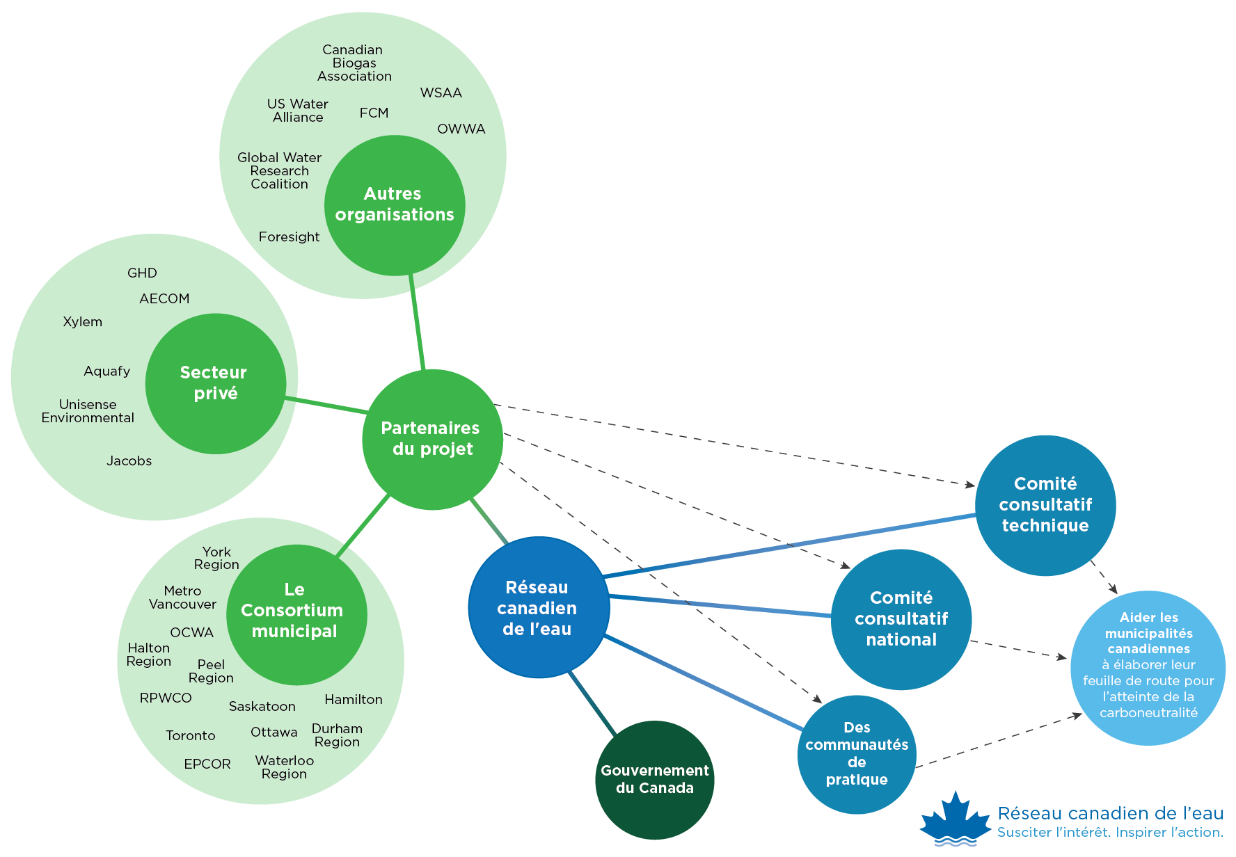 Le projet Tracer la voie vers une eau carboneutre fait appel à un réseau national d’experts, de décideurs et de collaborateurs qui partagent un objectif commun : réduire les émissions de GES dans les services d’eau, d’eaux usées et d’eaux pluviales. Il n’est pas trop tard pour vous y joindre : le réseau s’élargira tout au long du projet.